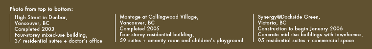 • Dockside Green in Victoria, BC in partnership with Windmill Development